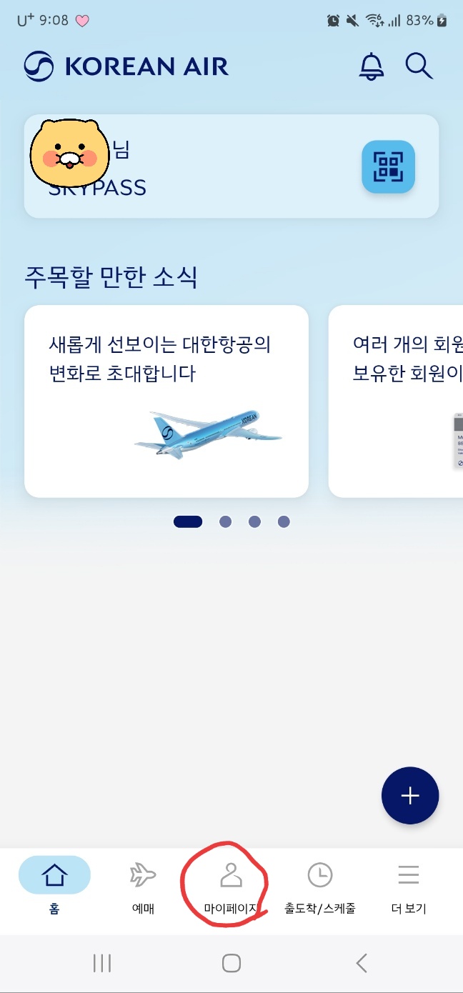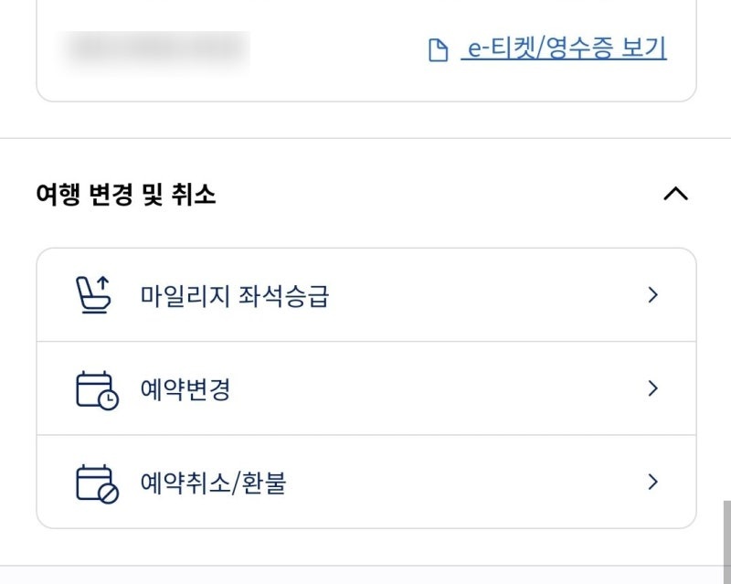 대한항공 앱 → 왼쪽 상단 메뉴 ≡ 클릭 → [예약 조회]