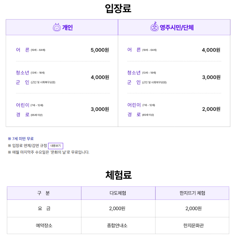한옥 마을처럼 꾸며진 공간을 거닐며 한복도 입어보고, 전통 공예나 서예도 직접 해볼 수 있답니다.