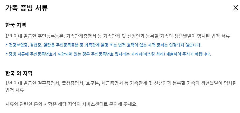 - 가족 증빙 서류